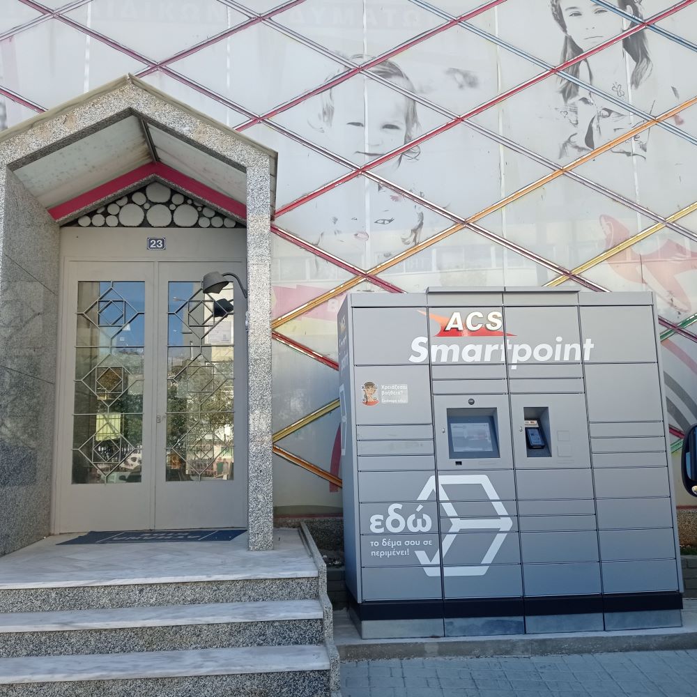 Προσέλθετε στο κατάστημα Athana Kids επί της οδού Αριστοτέλη Βαλαωρίτου 23. To ACS Smartpoint Locker βρίσκεται δεξιά της κεντρικής εισόδου του καταστήματος.