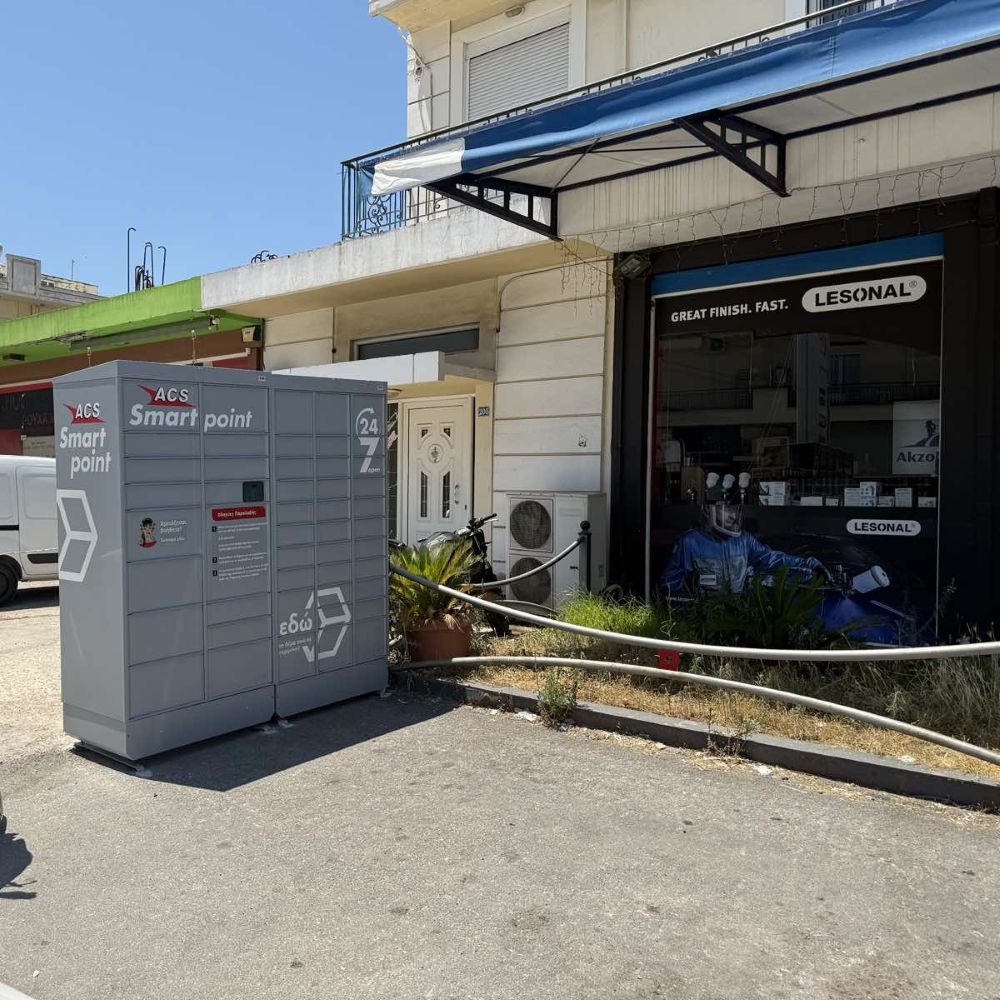 Προσέλθετε στο κατάστημα "Rally Sport" επί της οδού Ακρωτηρίου 206. To ACS Smartpoint Locker βρίσκεται στα αριστερά της κεντρικής εισόδου του καταστήματος.