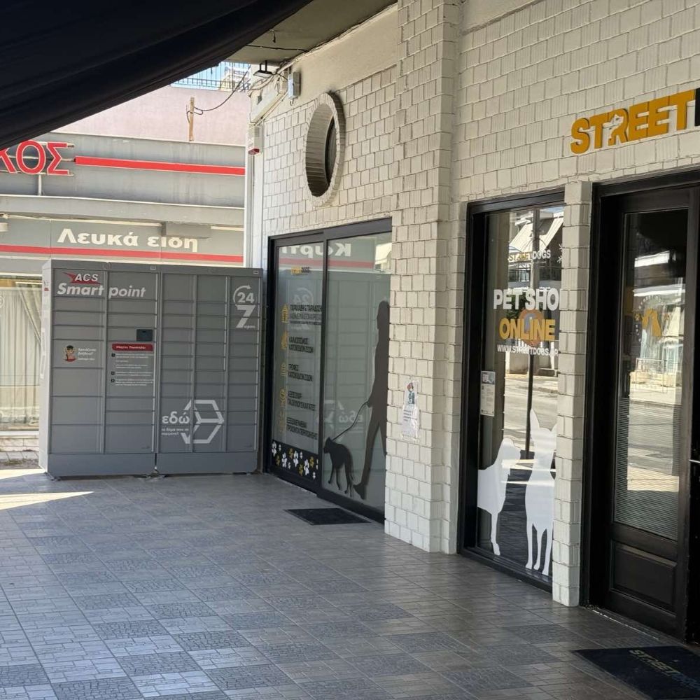 Προσέλθετε στο κομμωτήριο κατοικιδίων Street dogs επί της οδού Αγ. Ιωάννη Πράτσικα 86. To ACS Smartpoint Locker βρίσκεται αριστερά της κεντρικής εισόδου του καταστήματος.