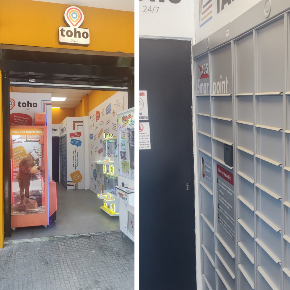 Προσέλθετε στο κατάστημα Toho επί της οδού Γρ. Λαμπράκη. To ACS Smartpoint Locker βρίσκεται εντός του καταστήματος.