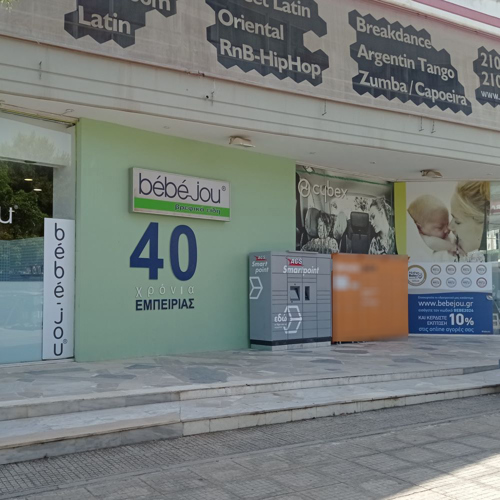 Προσέλθετε στο κατάστημα "Bebe Jou", επί της οδού Λαμίας 14. To ACS Smartpoint Locker βρίσκεται δεξιά της κεντρικής εισόδου του καταστήματος.