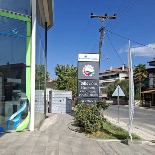 Προσέλθετε στο κατάστημα Θέρμανση Τσιβανίδης επί της οδού Νικολάου Πλαστήρα 55. To ACS Smartpoint Locker βρίσκεται δεξιά της κεντρικής εισόδου του καταστήματος.