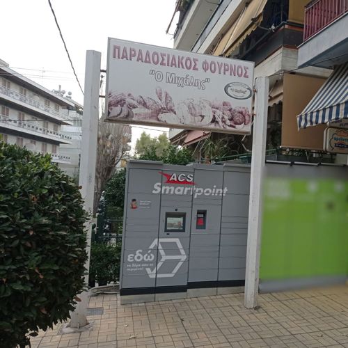 Προσέλθετε στο αρτοποιείο "Ο Μιχάλης" επί της οδού Κολοκοτρώνη 78. To ACS Smartpoint Locker βρίσκεται αριστερά της κεντρικής εισόδου του καταστήματος.