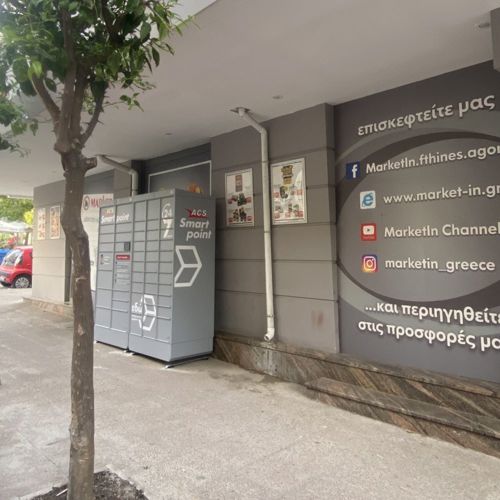Προσέλθετε στο κατάστημα Market In επί των οδών Αβέρωφ 87 & Κοραή 16. To ACS Smartpoint Locker βρίσκεται στον εξωτερικό χώρο, στο πλάι του καταστήματος επί της οδού Κοραή.