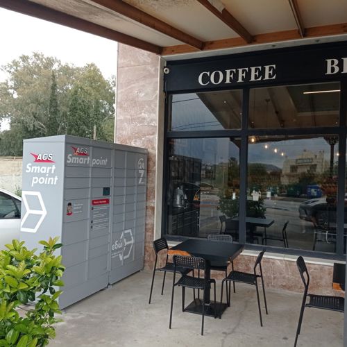 Προσέλθετε στο Αρτοποιΐo Λαγονησίου επί της Λεωφ. Καλυβιών 4-8. To ACS Smartpoint Locker βρίσκεται αριστερά της κεντρικής εισόδου του καταστήματος.
