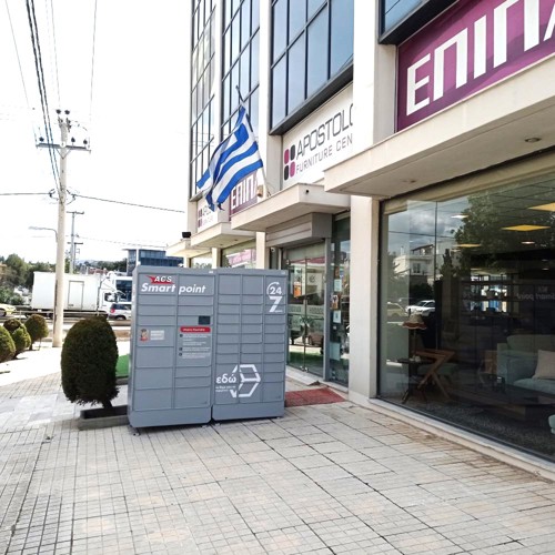 Προσέλθετε στο κατάστημα "Apostolou Furniture" επί της Λεωφόρου Θεσσαλονίκης 61. To ACS Smartpoint Locker βρίσκεται δεξιά της κεντρικής εισόδου του καταστήματος.