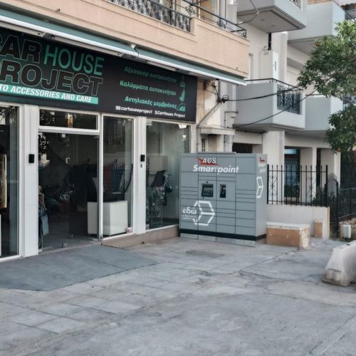 Προσέλθετε στο κατάστημα Car House Project στη Νίκαια επί της οδού Μακεδονίας 52. To ACS Smartpoint Locker βρίσκεται δεξιά της κεντρικής εισόδου του καταστήματος.