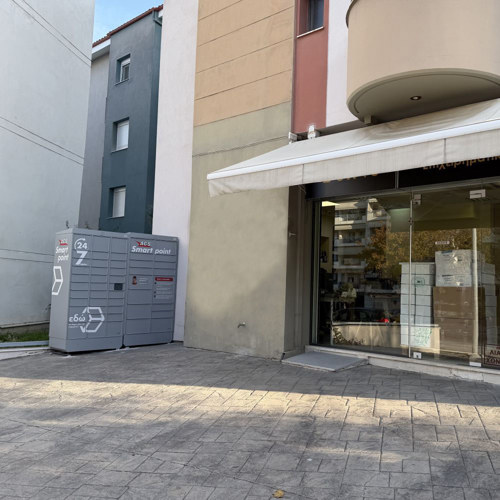 Προσέλθετε στο κατάστημα VGifts επί της οδού Κωστή Μοσκώφ 1. To ACS Smartpoint Locker βρίσκεται αριστερά της κεντρικής εισόδου του καταστήματος.