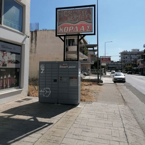 Προσέλθετε στο κατάστημα Χρώματα Κόρδας επί της οδού Αλφειού 1. To ACS Smartpoint Locker βρίσκεται δεξιά της κεντρικής εισόδου του καταστήματος.