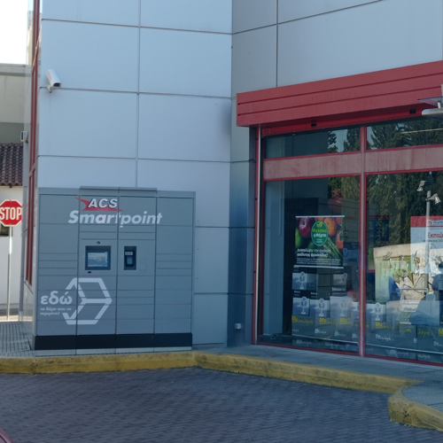 Προσέλθετε στο κατάστημα My Market Ριζούπολης. To ACS Smartpoint Locker βρίσκεται αριστερά της κεντρικής εισόδου.
