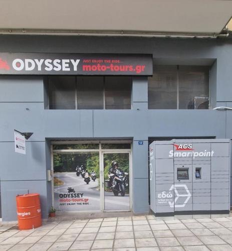 Προσέλθετε στο ταξιδιωτικό πρακτορείο Odyssey Tours στις Συκιές επί της οδού Κύπρου 17. To ACS Smartpoint Locker βρίσκεται δεξιά της κεντρικής εισόδου του καταστήματος.