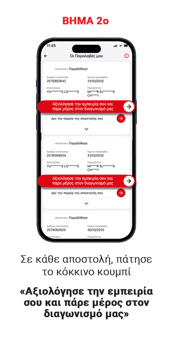 Από 4/12/2025 έως 25/1/2026 πες μας τη γνώμη σου, για την εμπειρία παραλαβής ή παράδοσης της αποστολής σου, και μπες αυτόματα στη μεγάλη κλήρωση που χαρίζει 4 iPhone 17 Pro 256GB!