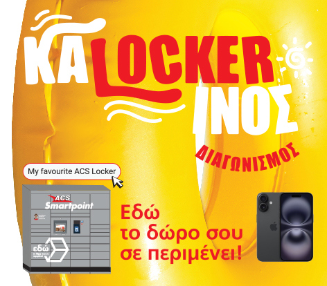 Κάθε αξιολόγησή σου και 1 συμμετοχή. Παρέλαβε τις επόμενες παραγγελίες σου από τα αγαπημένα σου ACS Lockers και αύξησε τις συμμετοχές σου για να κερδίσεις ένα iPhone 16/128 GB.