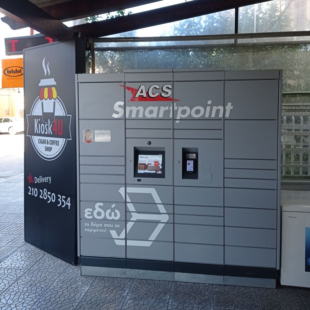 Arrive at KIOSK4U store at 84, street Gergiou Papandreou in Metamorfosi. The ACS Smartpoint Locker is located in the left side of the entrance of the store.