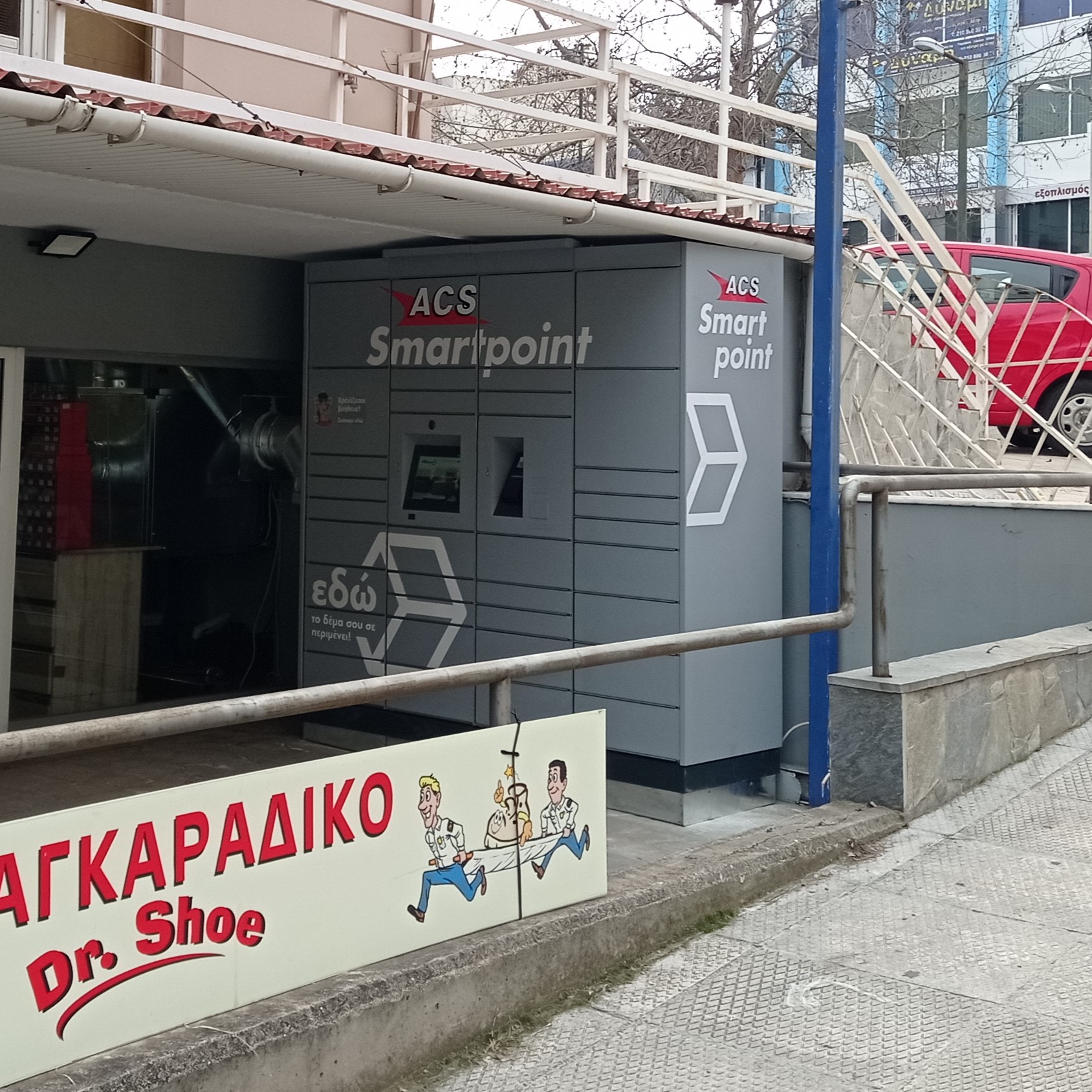 Arrive at Dr. Shoes store on 20 Patriarchi Grigoriou E' Street. The ACS Smartpoint Locker is located on the right of the store's main entrance.