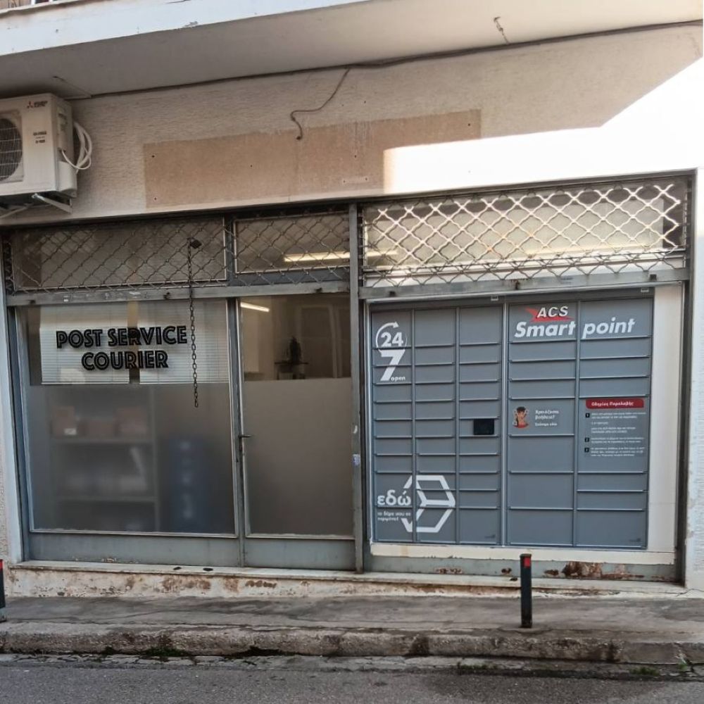Arrive at Post Service Courier store on 17 Frygias Street. The ACS Smartpoint Locker is located on the right of the store's main entrance.