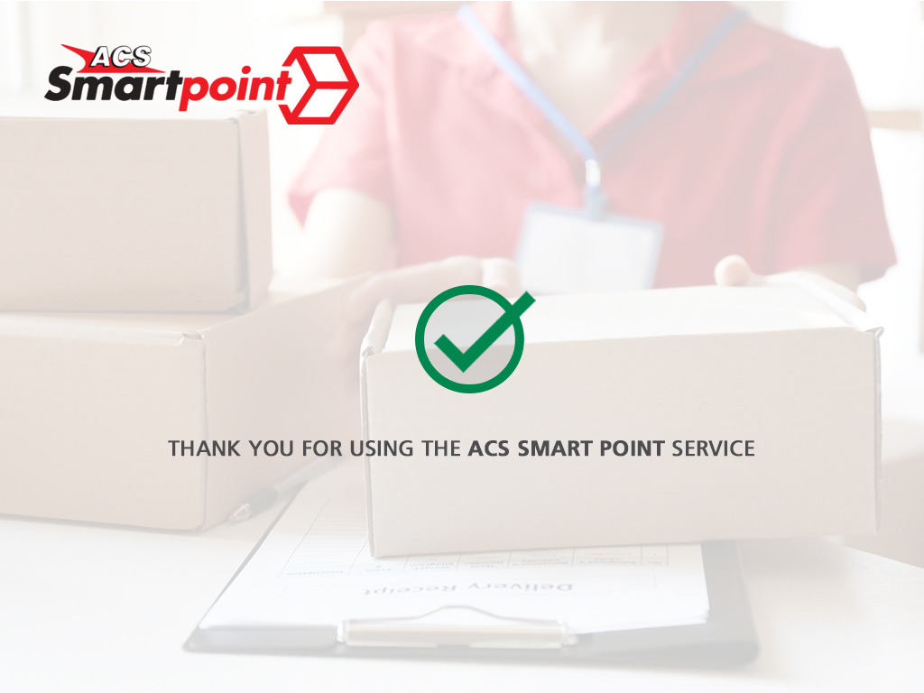 In order to collect your shipment from an ACS Smartpoint Locker, the shipment number and the unique PIN code are required, which are sent via sms or Viber to the mobile phone linked to shipment. If you wish, you can pass this information on to any third party, who may collect the shipment on your behalf. ACS S.A suggests for your own safety the non-disclosure and does not bear any responsibility in case the collection is made by a third party.