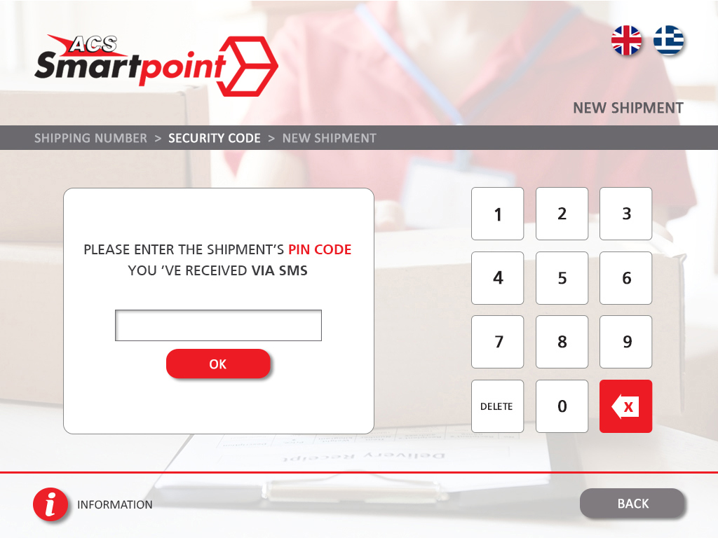 To pick up your shipment from an ACS Smartpoint Locker point, you need to have the shipping number (10 digit number) and the unique PIN code (6 digit code) sent to you via sms or Viber.